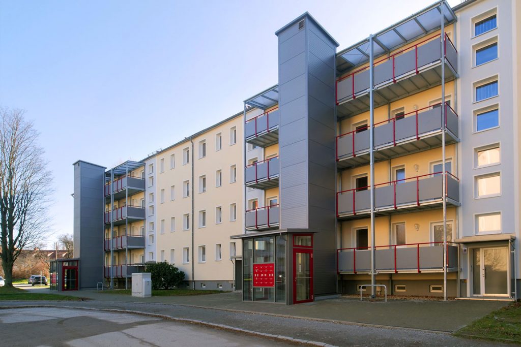 Beschreibung Durch die Installation eines Aufzuges mit zusätzlichen Laubenganges an dem Mehrfamilienhaus auf der Johannes-R.-Becherstraße wurde den Bewohnerinnen und Bewohner ein sicherer und komfortabler Zugang gestalten. Neben der Aufzugs- und Laubenganginstallation wurde ebenfalls die Fassade sowie das davor befindliche Pflaster erneuert. Das Projekt konnte innerhalb von fünf Monaten abgeschlossen werden. Bauherr Wohnungsgenossenschaft Aufbau Bautzen eG […]