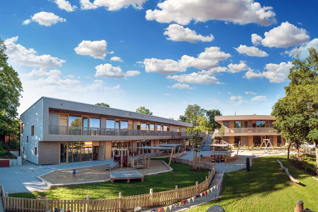 Beschreibung Mit dem Neubau der Kita ist in rund zwei Jahren Bauzeit ein freundlicher Ort für Kinder entstanden. Das Konzept des natürlichen und offenen Erscheinungsbildes wurde von innen nach außen getragen. Dadurch entstanden nicht nur helle Gruppenräume, gemütliche Rückzugsbereiche und vielseitige Funktionsräume, die viel Platz zum Spielen, Basteln und gemeinsame Aktivitäten bieten, sondern auch ein […]